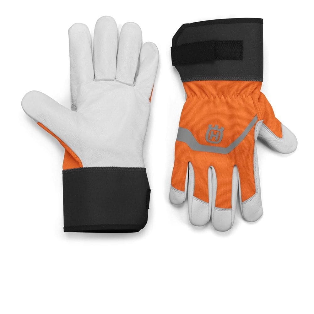 Čvrste Husqvarna zaštitne rukavice dizajnirane za rad u vrtu i šumarstvu.