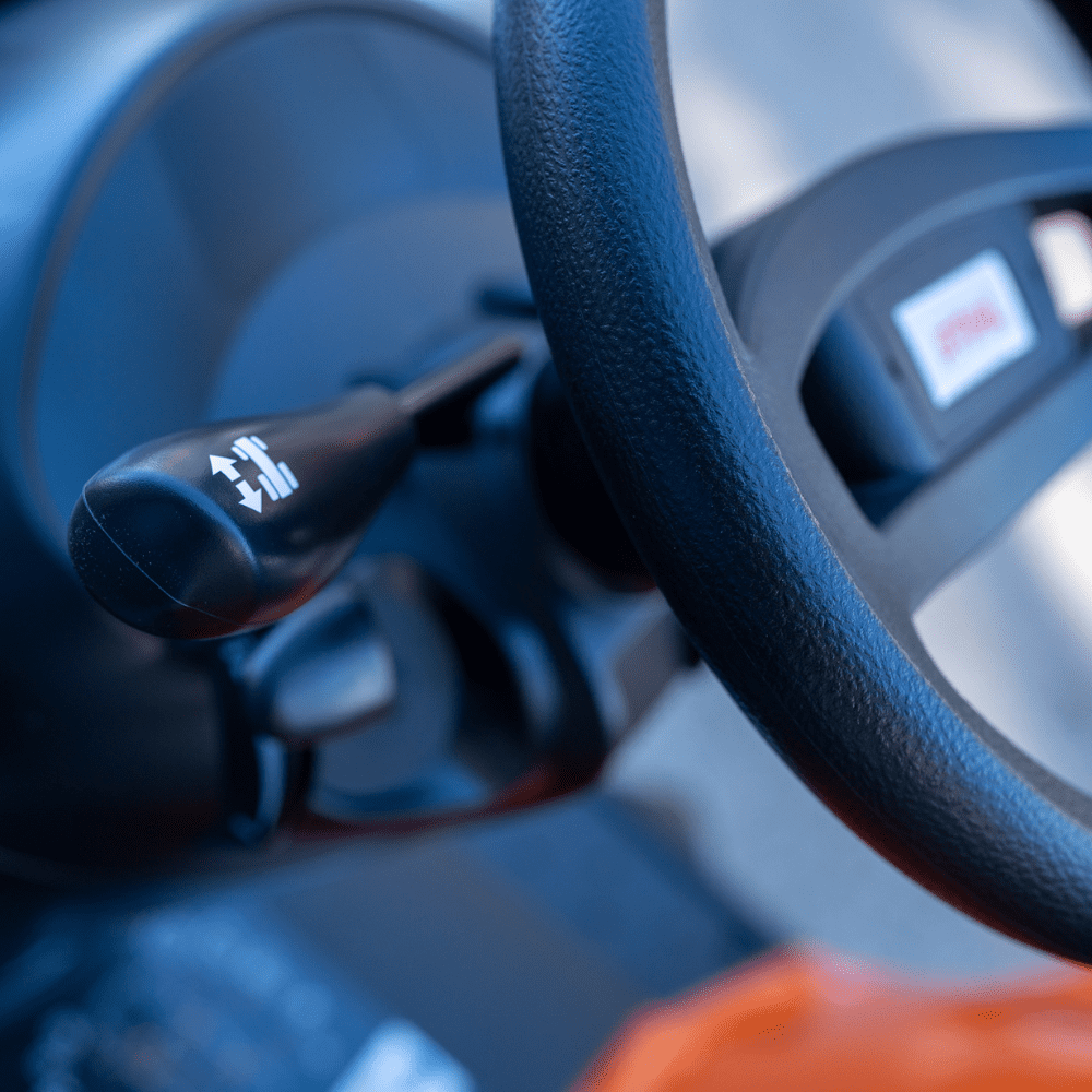 Ručka za centralno podešavanje visine košnje smještena je tik uz vozačevo sjedište. Praktična i na dohvat ruke, omogućava podešavanje visine košnje bez napora i u osam stupnjeva.